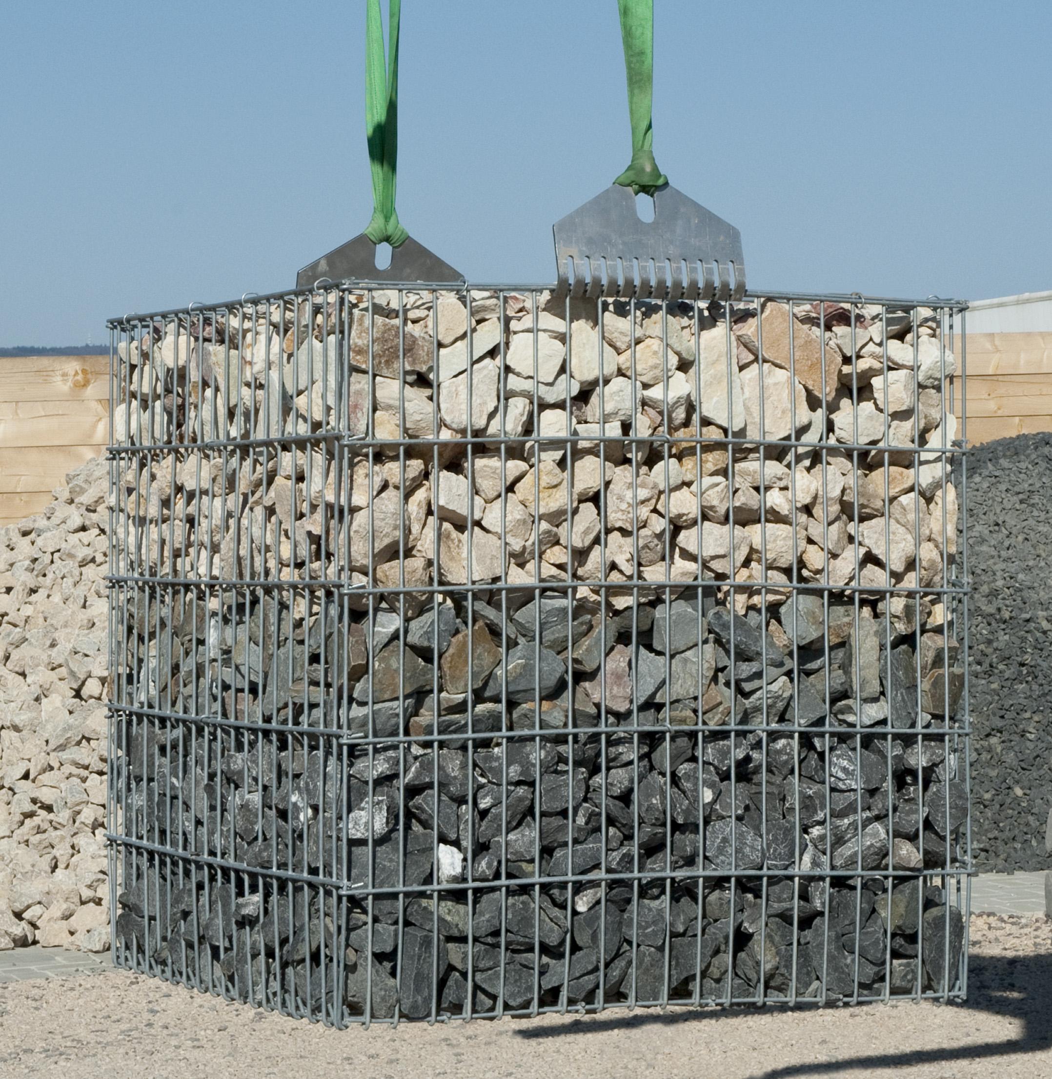 Transportkorven worden gevuld geleverd met ogen om ze makkelijk mee te kunnen verplaatsen. De korven zijn van dikker draad materiaal gemaakt waardoor ze sterker zijn en het transport gevuld met stenen goed kunnen doorstaan. Door de verdichting is de transportkorf bijzonder vormvast.
